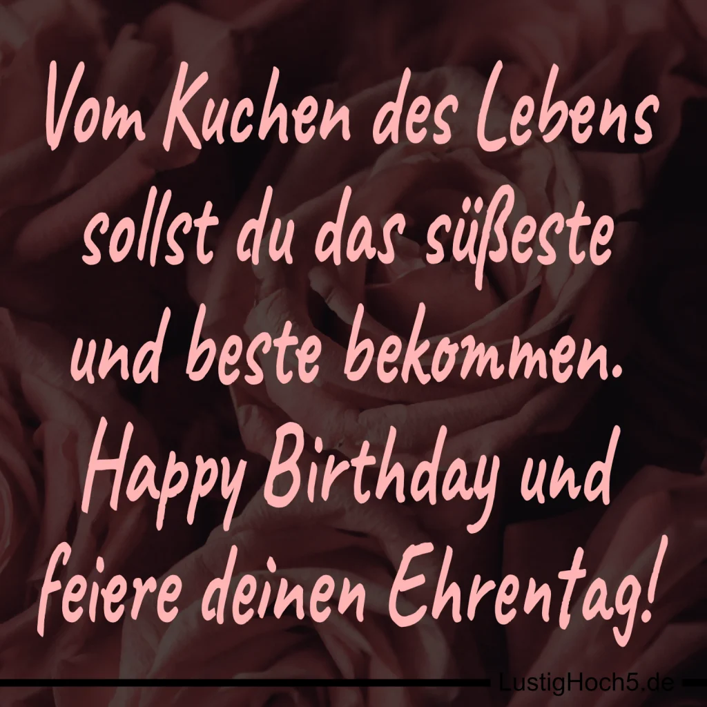 Es ist immer schön, wenn man an seinem Geburtstag von seinen Liebsten gratuliert wird. Eine besonders lustige Möglichkeit, um ‘Happy Birthday’ zu sagen, sind unsere Geburtstagssprüche. In unserer Sammlung finden Sie viele verschiedene Wünsche, die liebevoll, herzlich oder witzig formuliert sind und für jeden Geschmack und Anlass geeignet sind. Verwenden Sie sie als Alternative oder Ergänzung zu klassischen Glückwünschen und Geburtstagskarten, zum Beispiel zum 50. oder 60. Geburtstag, und überraschen Sie Ihre Freunde und Familie mit einer individuellen und lustigen ‘Happy Birthday’ Gratulation. Egal ob Sie Ihre Freundin, Ihren Freund, Ihre Schwester oder Ihren Bruder zum Geburtstag gratulieren möchten – wir haben den passenden Spruch für jeden Empfänger.